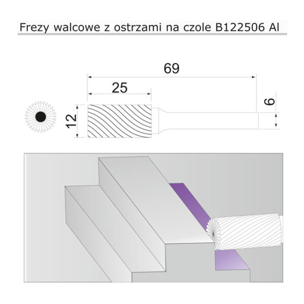 Κυλινδρική ακμή φρέζας με κοπτικές ακμές (B) για αλουμίνιο 12 mm 25 mm